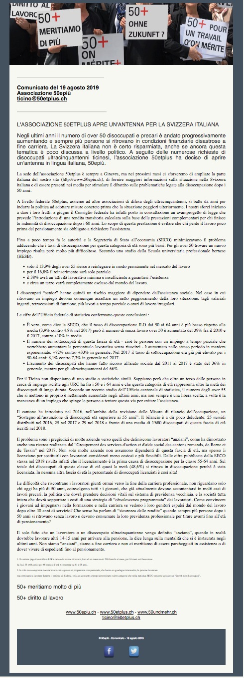 Vous trouverez ici des articles, des rapports, des chiffres, des communiqués de presses, des prises de positions et d’autres contributions publiques concernant les 50 ans et plus sans emploi en suisse